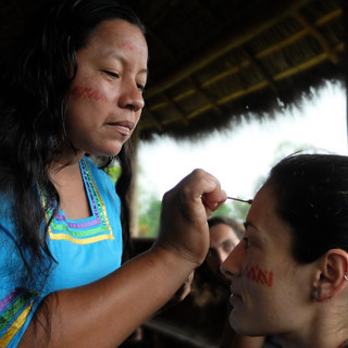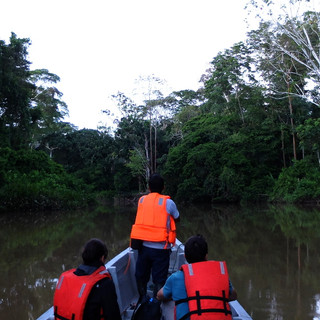 Dernier mois, la destination ultime : l'Equateur. On a voulu se laisser le choix et se décider au dernier moment et on a jeté notre dévolu sur ce petit pays qui semble tout avoir : la côte pacifique et de jolies vagues, des îles uniques au monde, des volcans, des lacs magnifiques, des montagnes et même un bout d'Amazonie. C'est donc par là qu'on démarre avec Chiara et Julien qui se sont laissés tenter par l'aventure. Armés de notre Malarone et piqués contre la fièvre jaune, on fonce réaliser un rêve. Le dépaysement commence quand une barque à moteur vient nous chercher sur les berges du Rio Napo pour nous emmener à une bonne heure de toute route praticable vers notre hébergement dans la réserve Yasuni au cœur du territoire de la communauté Kichwa.